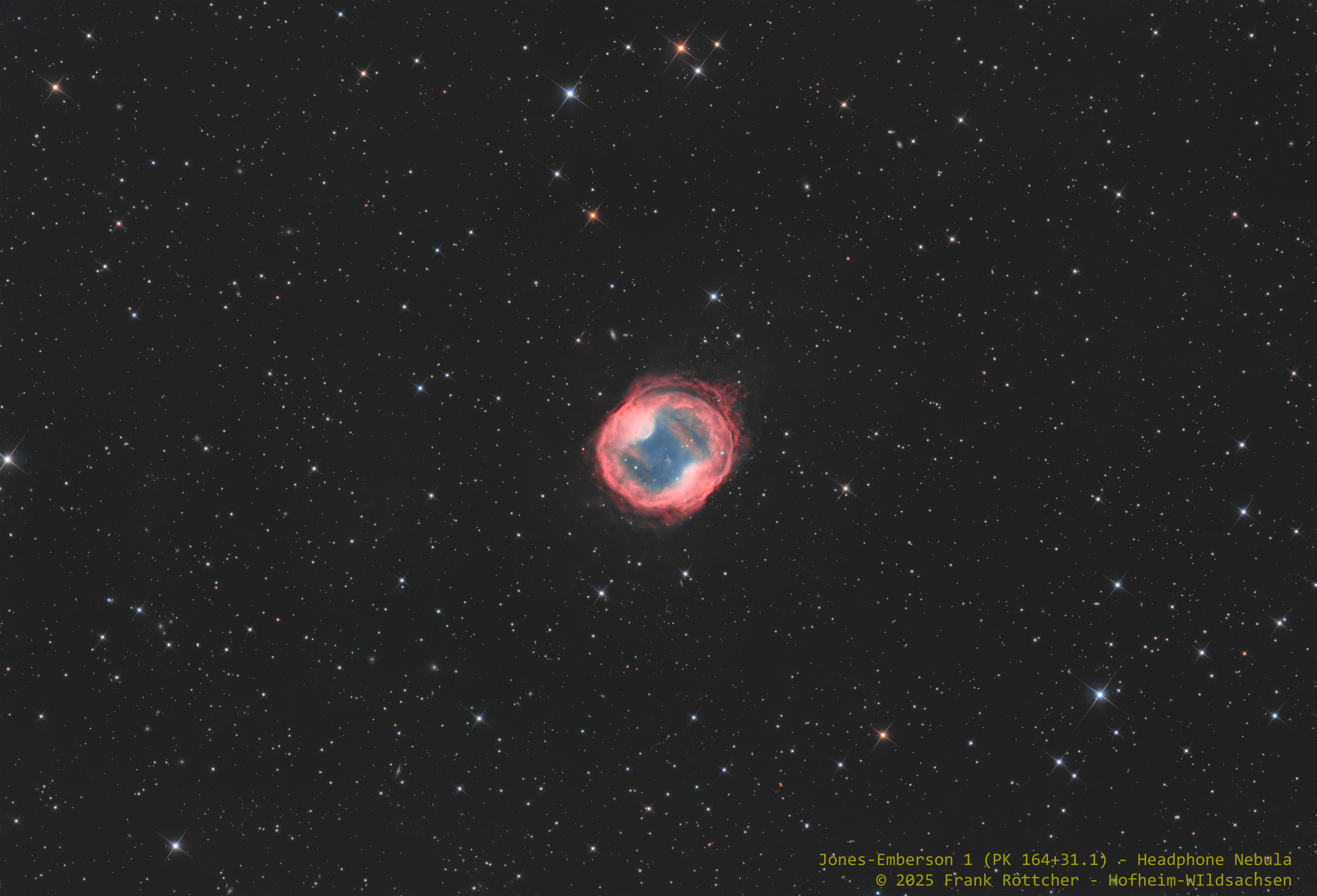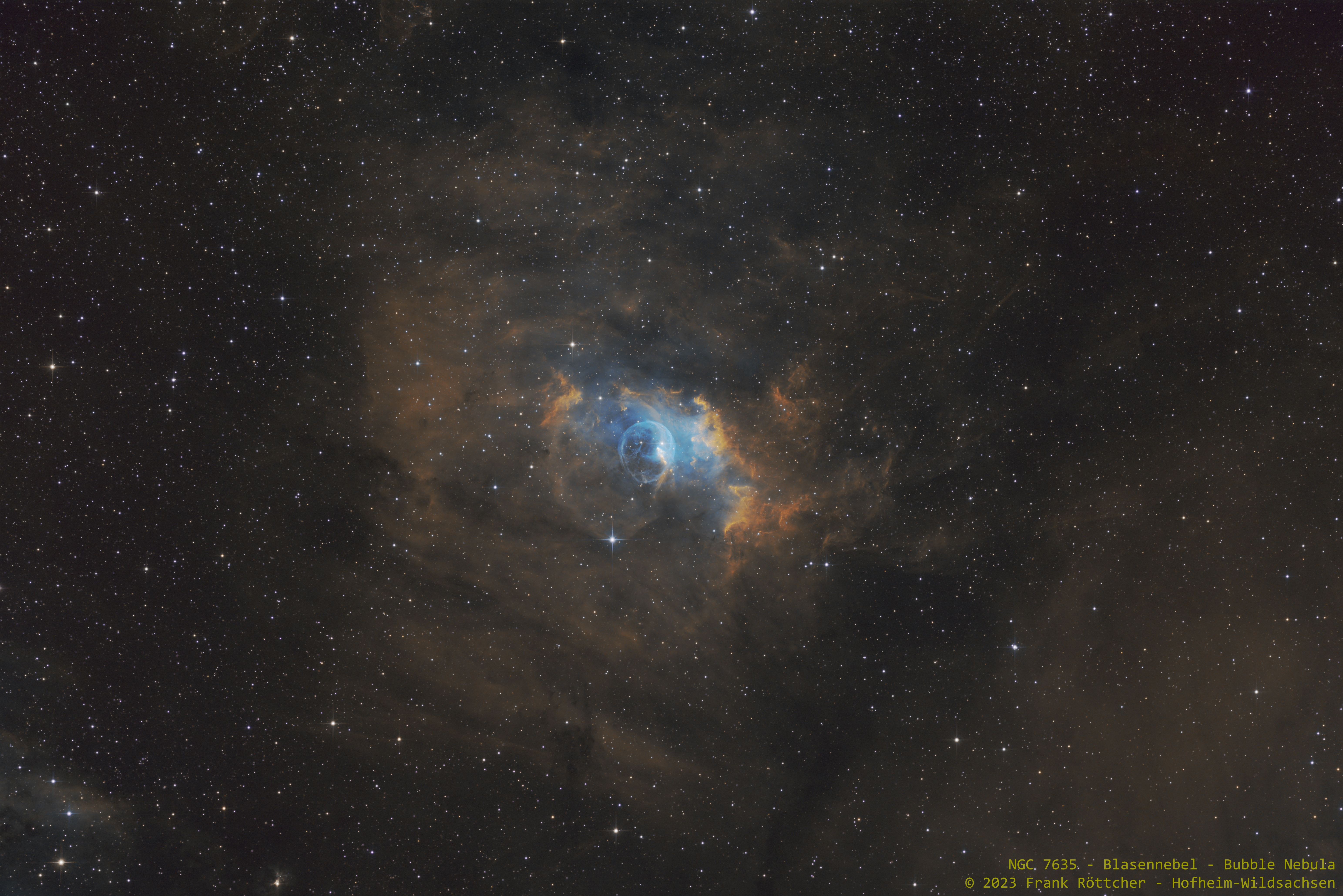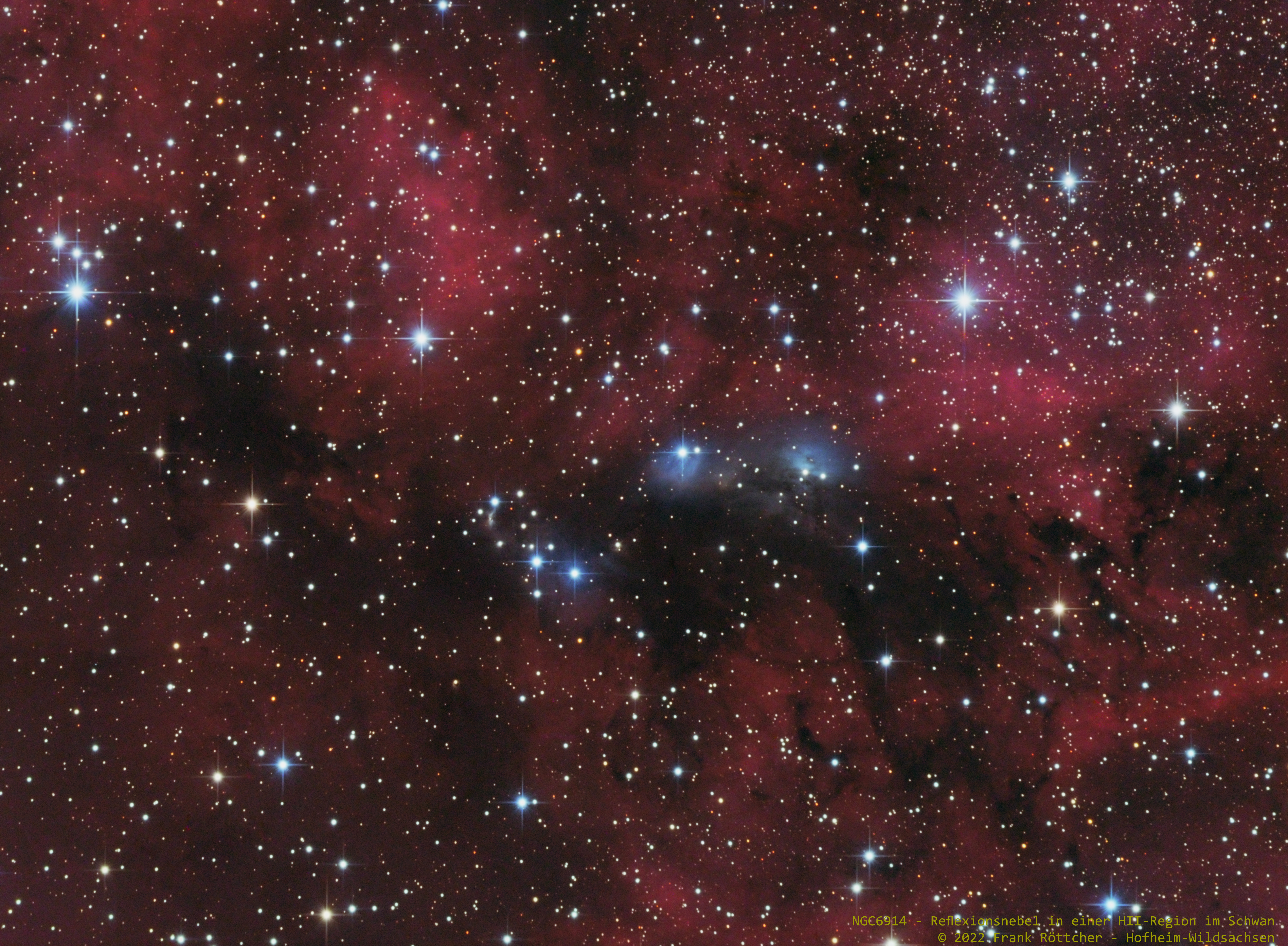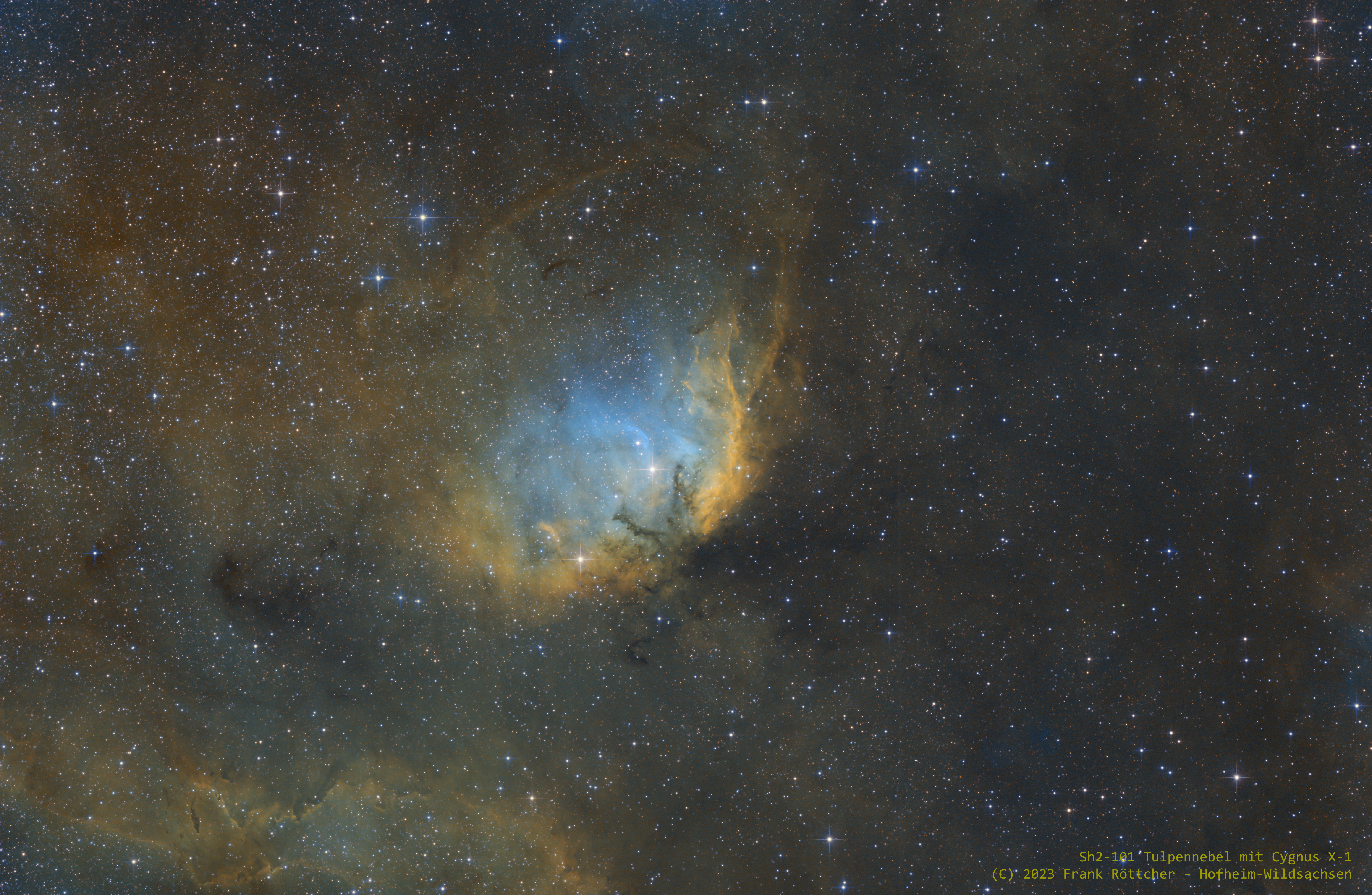 2025/08 NGC 7000 - Die große Wand im Schwan 2025/04 M98 und M108 - Eulennebel mit Spiralgalaxie 2025/03 Jones-Emberson 1 (PK 164+31.1) Headphone Nebula 2021-25 IC410 Kaulquappennebel 2024/08 CTB1 - Popped Balloon Nebel in SHO 2024/08 CTB1 - Popped Balloon Nebel in HOO 2024/07 Irisnebel 2024/05 NGC6357 Hummernebel 2024/05 IC45892 - Blauer Pferdekopfnebel 2024/05 NGC6188 - Fighting Dragons of Ara 2024/05 NGC 3372 - Eta Carinae Nebel 2023/09 LDN1235 Dunkler Haifisch-Nebel 2023/08 NGC7635 Der Blasennebel 2023/07 NGC6888 Mondsichelnebel / Crescent Nebula 2023/06 Sh2-101 Tulpennebel mit Cygnus X-1 2022/08 NGC6914 Ein Reflexionsnebel in einer HII Region im Sternbild Schwan 2022/04 M16 Adlernebel mit den Säulen der Schöpfung 2022/04 IC 2944 Lambda Centauri Nebel (Running Chicken Nebula) 2022/04 Mosaik der Region um Eta Carinae, die südlichen Plejaden und den Running Chicken Nebel 2022/04 Mosaik der Region um Eta Carinae, die südlichen Plejaden und den Running Chicken Nebel ANNOTIERT Galaxies and ClustersOur Solar System